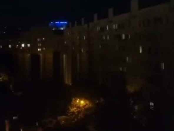 На кадрах видно, що після ракетного удару в місті зникло світло.