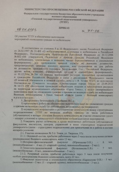 “Керівництвом Новосибірського державного педагогічного університету, Томського політехнічного університету, Томського державного педагогічного університету видано документи, які зобов’язують структурні підрозділи закладів виділити певну кількість студентів і співробітників для роботи на дільницях оповіщення”, – йдеться в повідомленні розвідки.