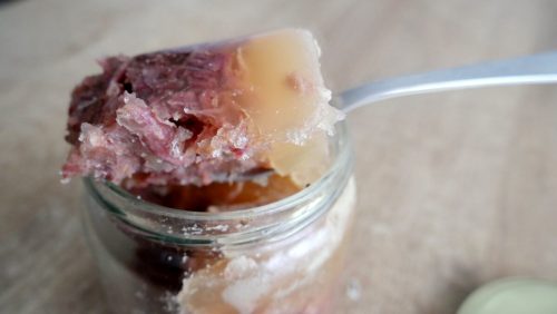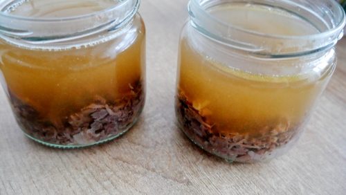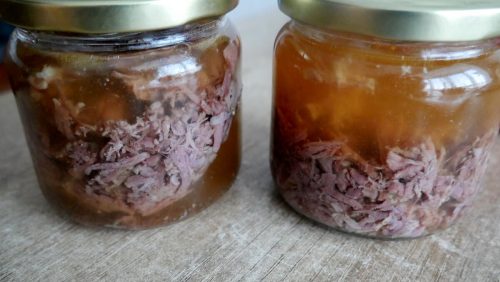 Однак є один момент: є холодець прямо з банки – не найприємніше заняття. Тому краще трохи підігріти та вилити у форму, потім охолодити перед подачею. Після відкриття банки холодець слід вжити протягом 24 годин – це правило застосовується до всіх стерилізованих продуктів.